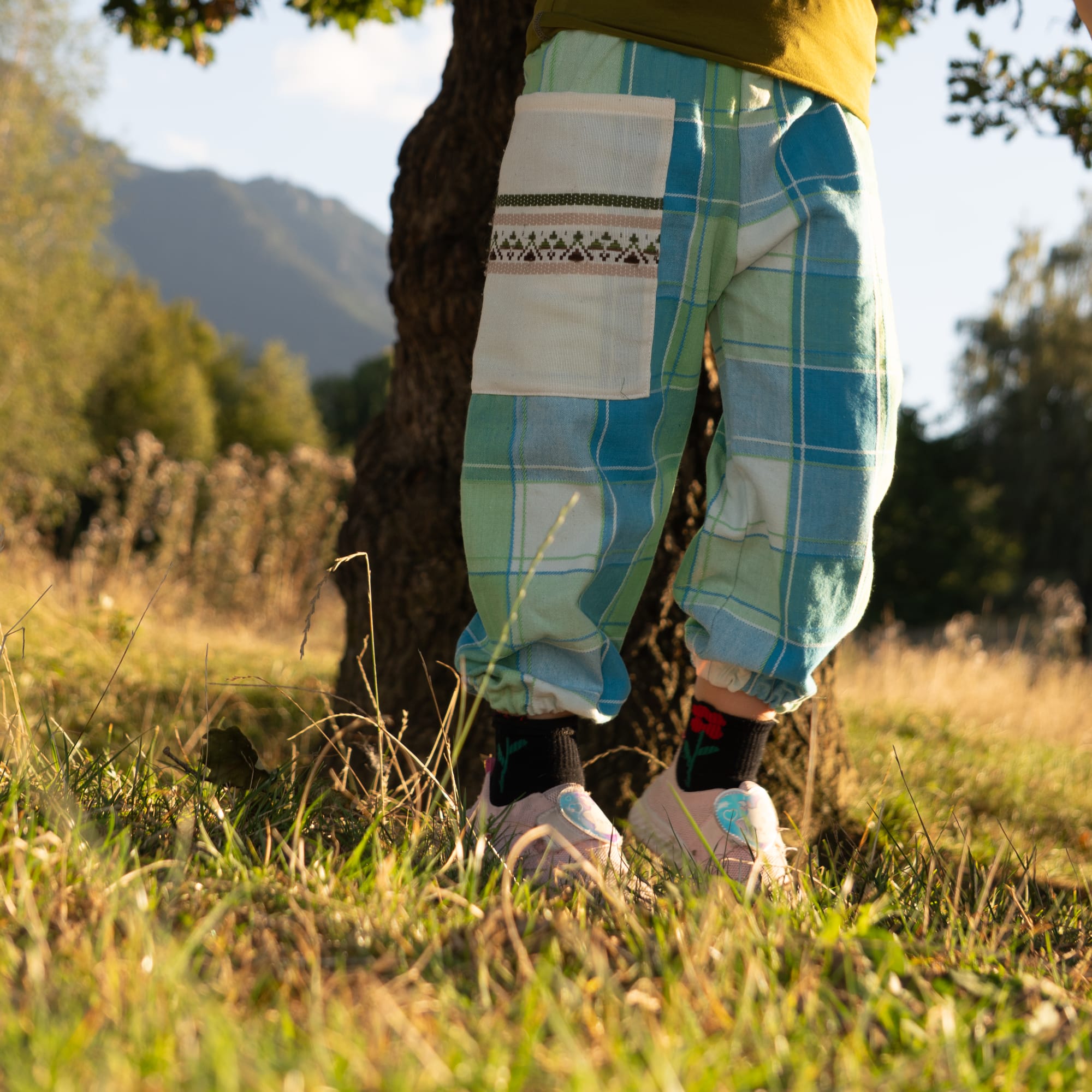 ✔ Buzunare unice, din materiale tradiționale recuperate – fiecare pereche este specială, cu detalii de inspirație tradițională.