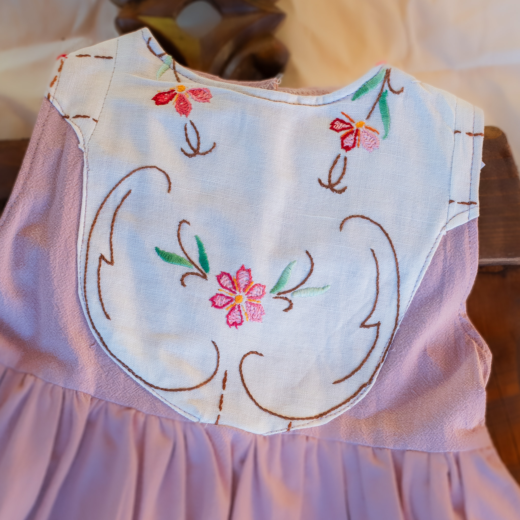 🌼 Broderie manuală recuperată din materiale vechi (bumbac sau in, variabil)