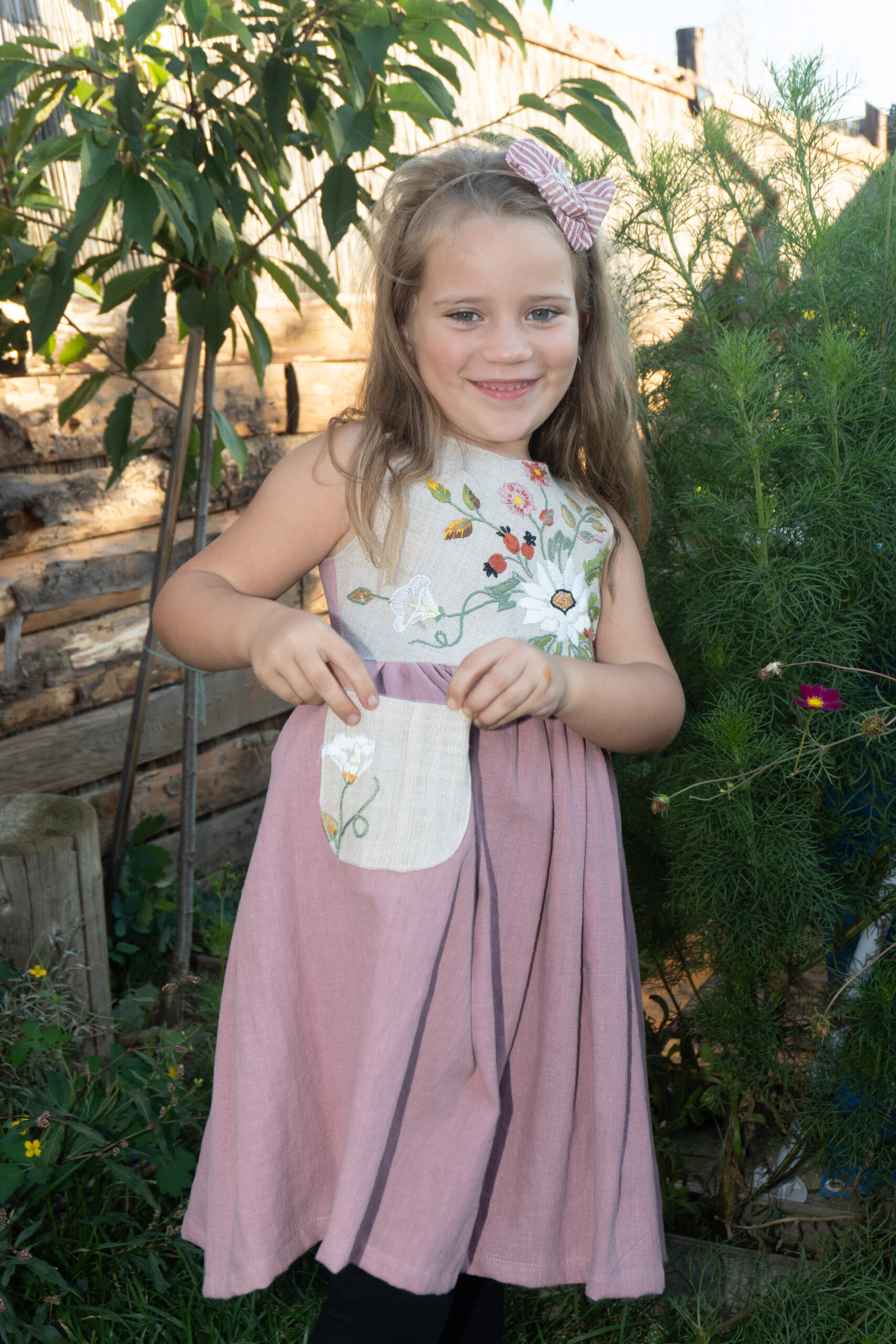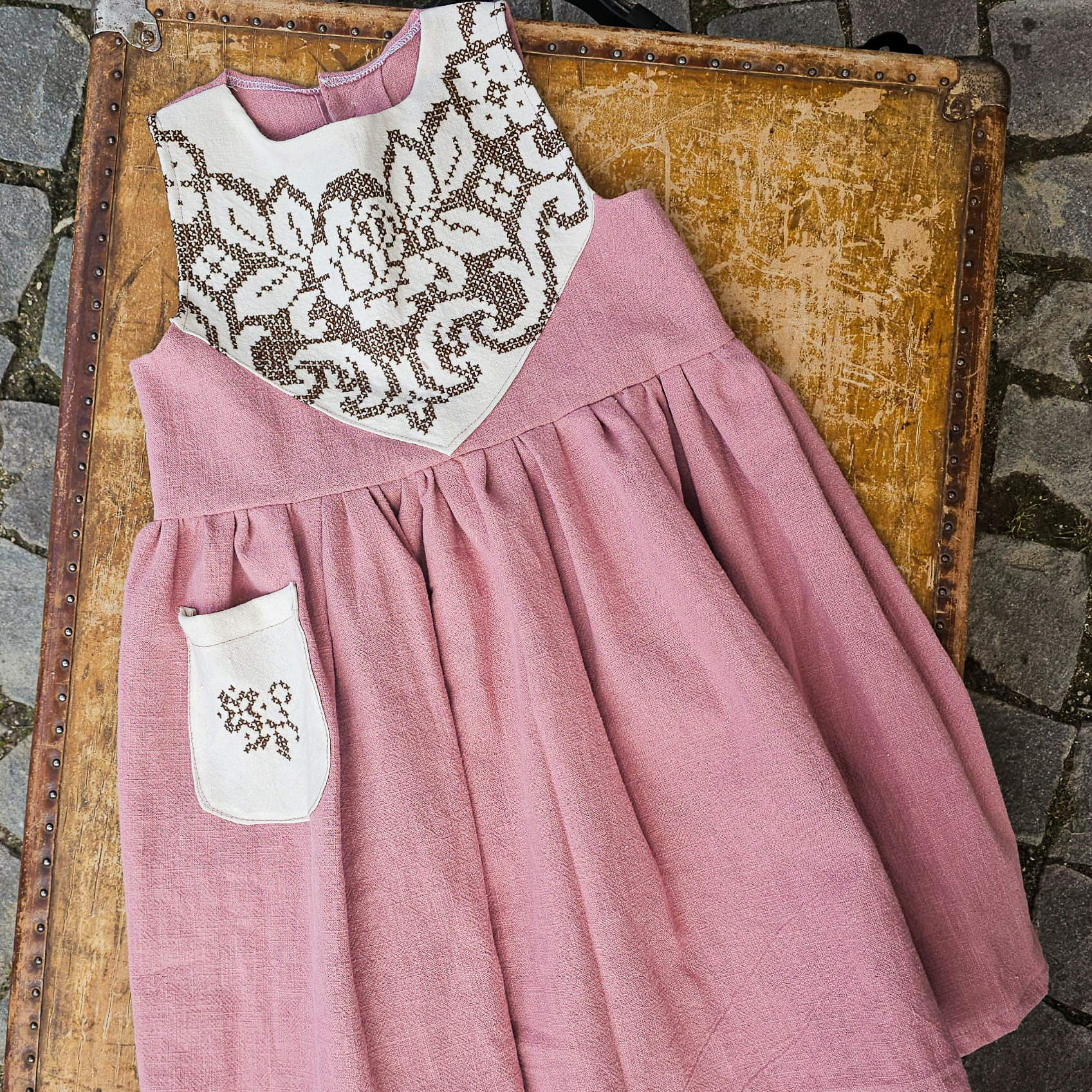 Rochie din in și broderie recuperată diferită.