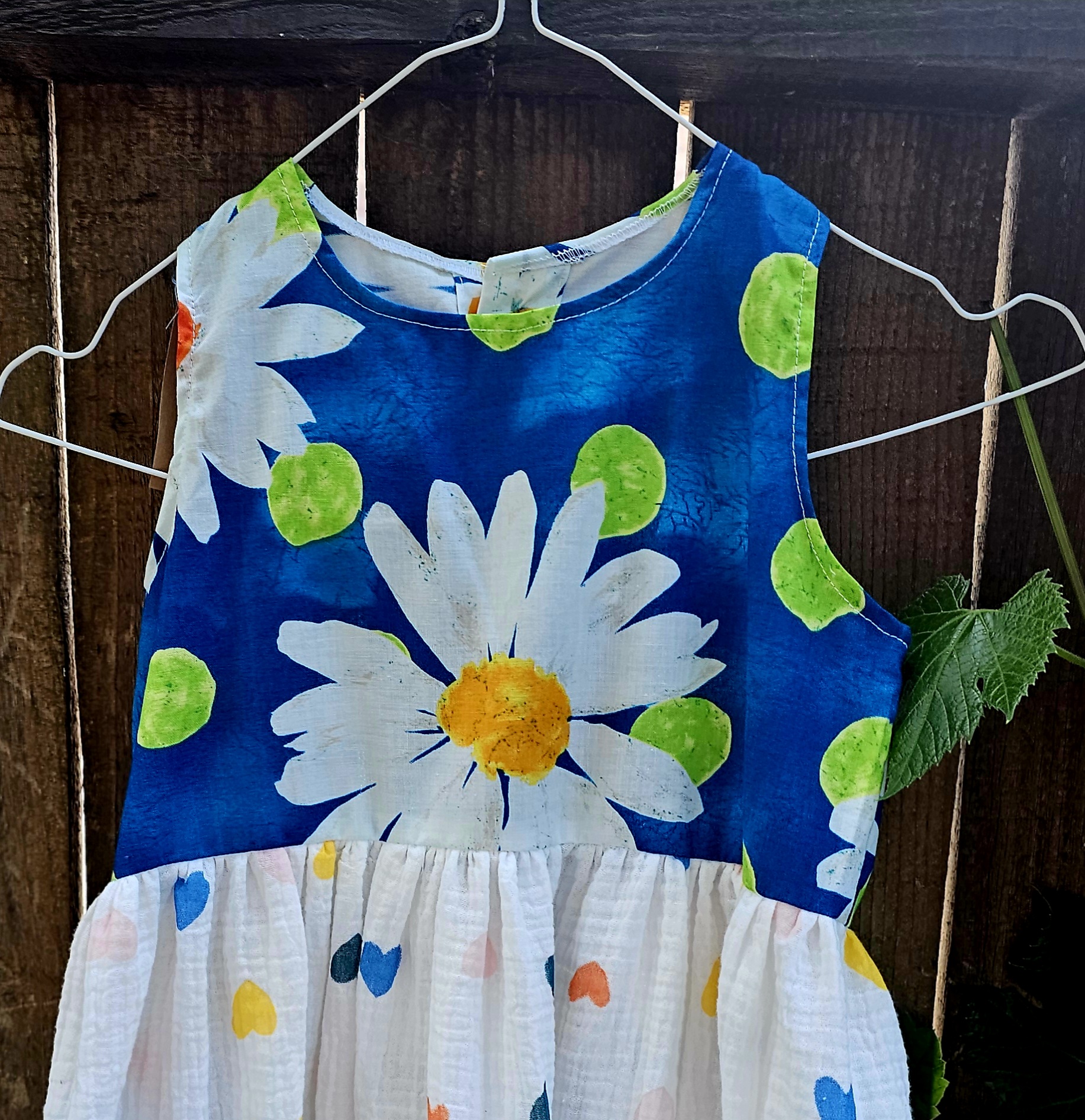 Ușoară, colorată și versatilă, această rochie din muselină dublă de bumbac și poplin de bumbac imprimat poate fi purtată și ca bluză. Este lejeră, confortabilă și realizată din materiale naturale, potrivită pentru joacă, plimbări sau ocazii speciale.