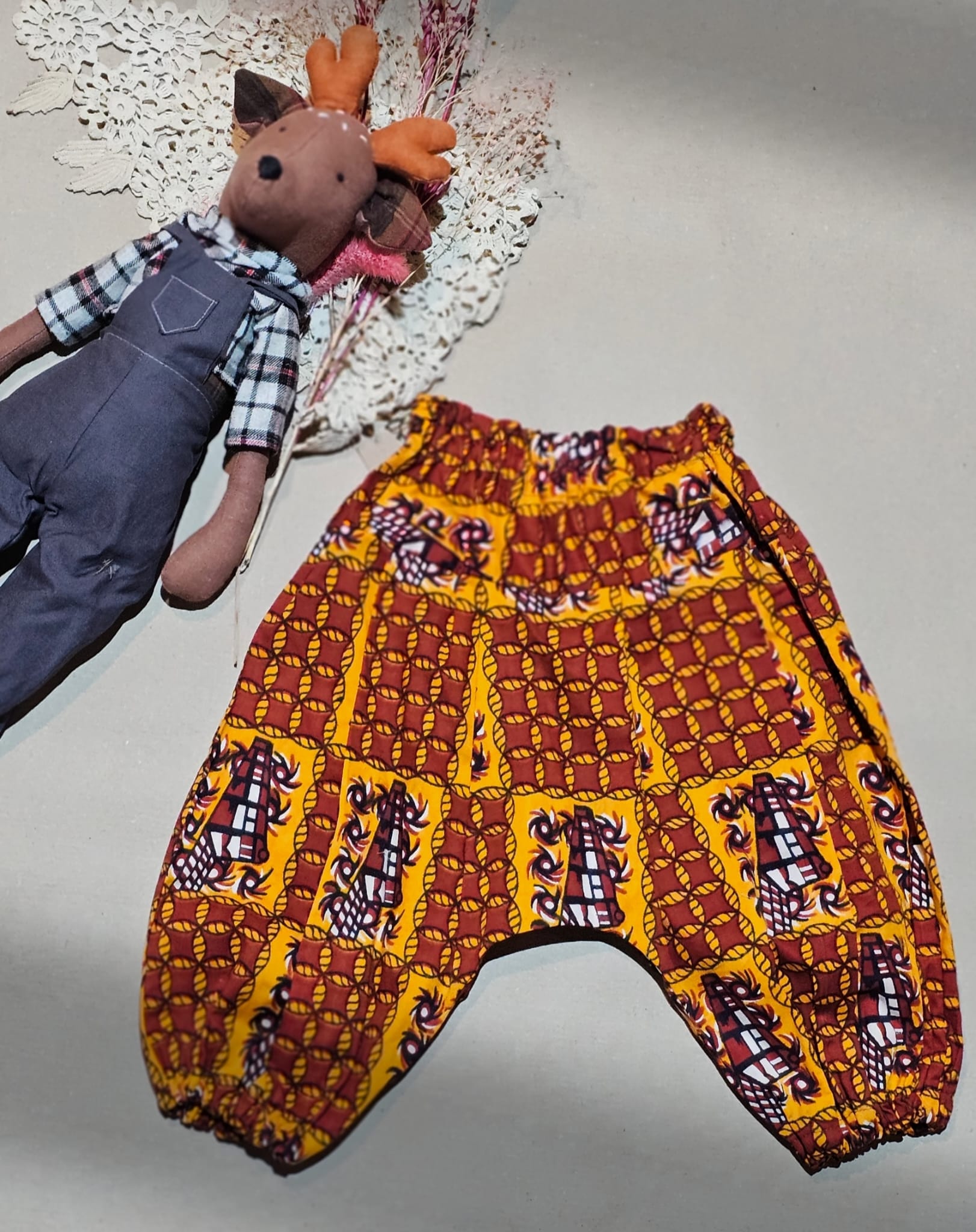 Acești pantaloni harem din bumbac imprimat manual alegerea perfectă pentru copiii activi! Materialul subtire oferă confort sporit, iar croiala lejeră permite libertate de mișcare. Elasticul la gleznă asigură o fixare delicată, iar designul versatil permite purtarea lor atât lungi, cât și trei sferturi.
